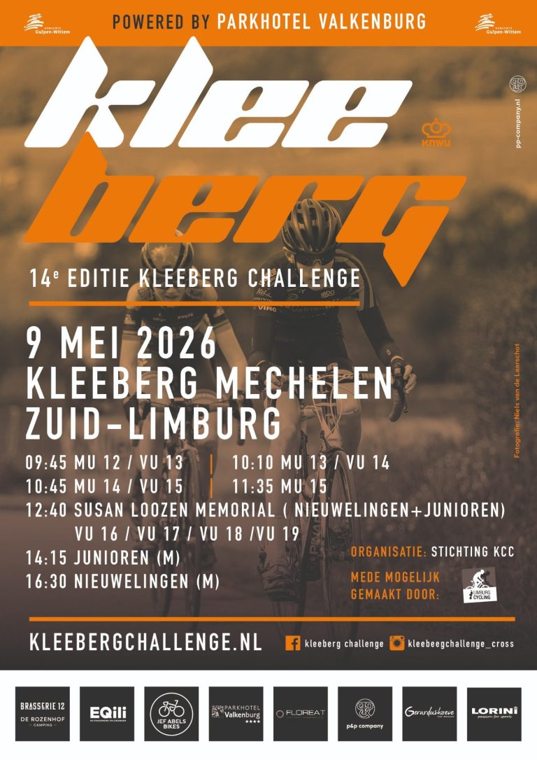 Zaterdag 9 mei is de 14de editie van de Kleeberg Challenge. De jeugdrenners kunnen inschrijven vanaf U12 jongens en U13 meisjes. Voor nieuwelingen en junioren meisjes staat de Susan Loozen Memorial weer op het programma. De junioren heren en nieuwelingen jongens staan in twee verschillende wedstrijden aan de start.